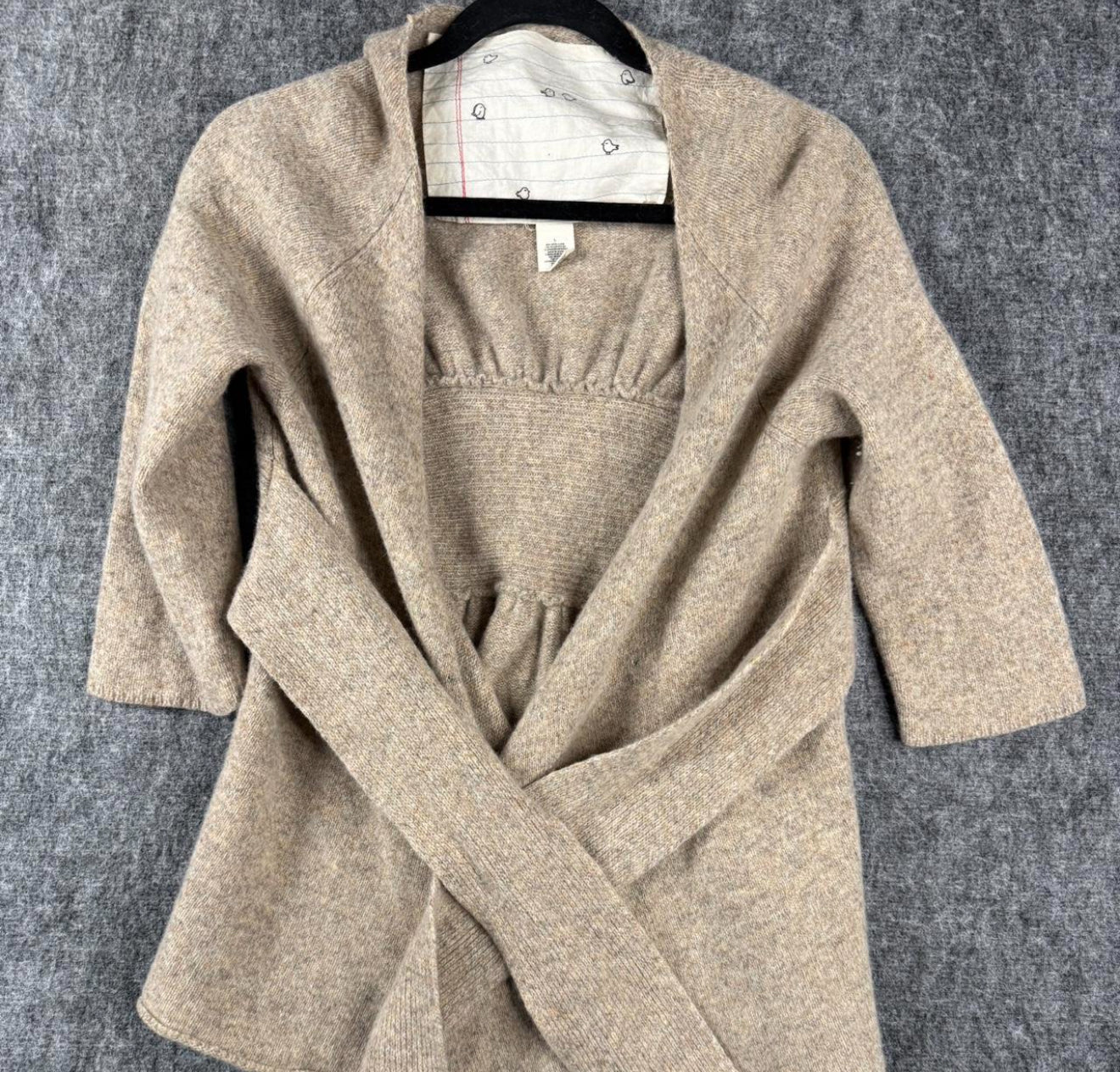 Women’s Wool Blend Cardigan Sweater with Tie Belt Beige Size Large – Cozy & Stylish